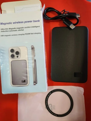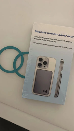 Fast magnetic Magsafe power bank keeps phone charged all day, slim design fits purse and pockets